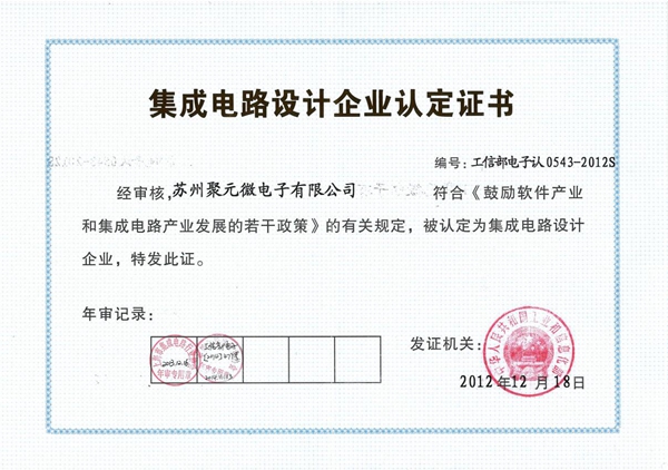 集成電路企業(yè)認定證書