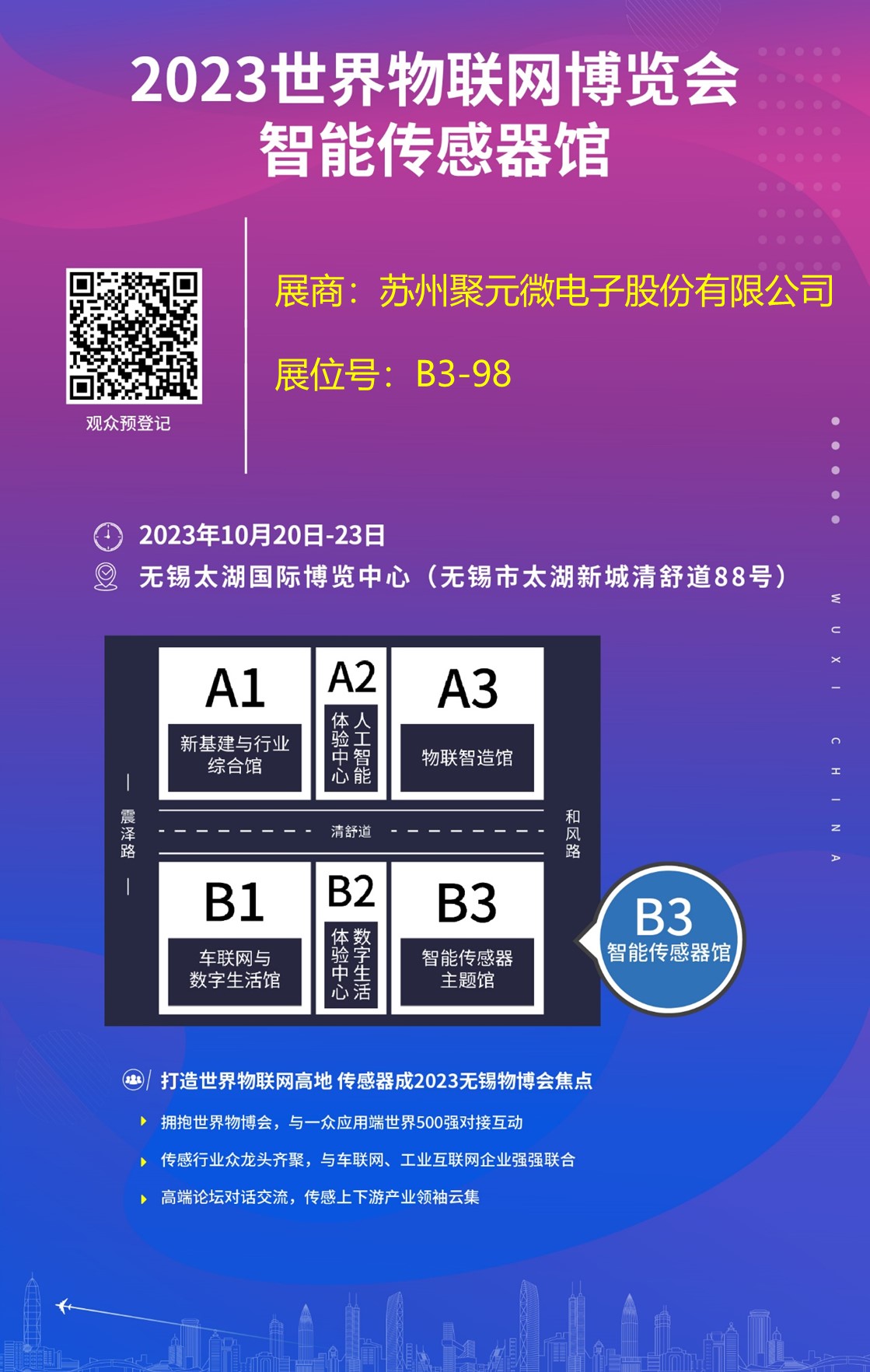 2023年10月20-23日,聚元微電子將于無錫太湖國際博覽中心辦展。誠邀各位朋友前來參展交流。